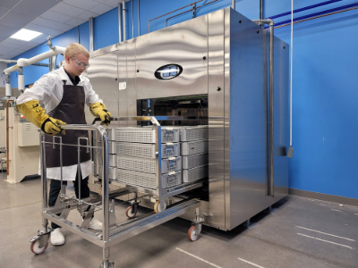 Durch die Installation mehrerer Sterilisatoren mit identischen Prozesskapazitäten ermöglicht STERIS Backup- und Validierungsfunktionen und gewährleistet so eine kontinuierliche Produktionskapazität.